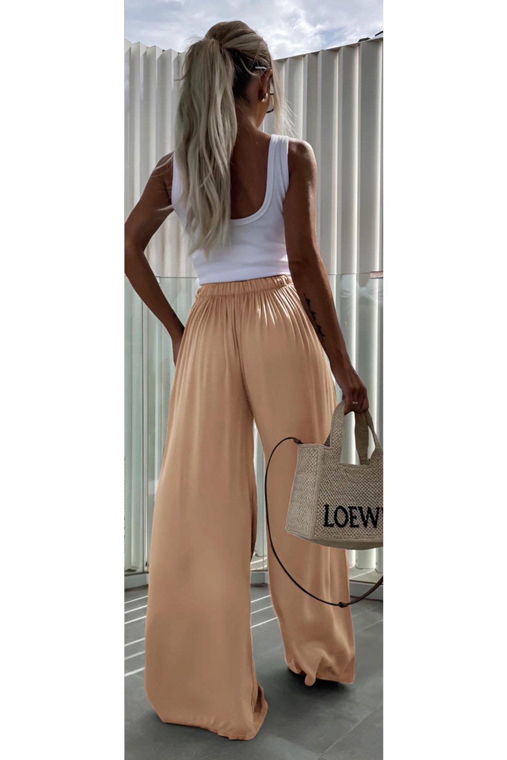 Dámské kalhoty pallazo se vyznačují širokým střihem nohavic a jemnost materiálu dodává elegantní look. Díky těmto vlastnostem jsou perfektní volbou pro různé příležitosti, od formálních akcí po běžné nošení.