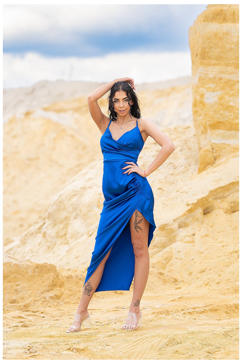 Saténové dlouhé šaty asymetrického střihu v královsky modré barvě. Tento konkrétní design má kratší délku na jedné straně a delší délku na druhé straně. Díky svému elegantnímu a sofistikovanému designu budete originální. Saténový vzhled šatů dodává lesk a luxusní vzhled. Asymetrický střih vytváří zajímavý vizuální efekt a dává šatům trendy look.
