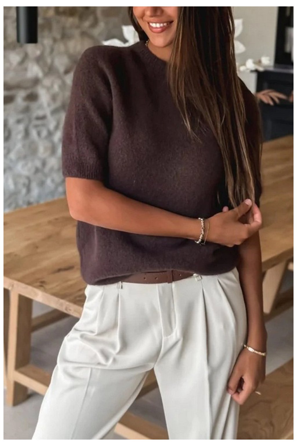 Tento elegantní a pohodlný svetr je vyroben z mimořádně jemného materiálu, který je příjemný na dotek a ideální pro celodenní nošení. Má moderní 3/4 rukávy a kulatý výstřih, který se snadno kombinuje s různými styly. Perfektní volba pro jarní i podzimní outfity – hodí se k džínům, sukním i elegantním kalhotám.