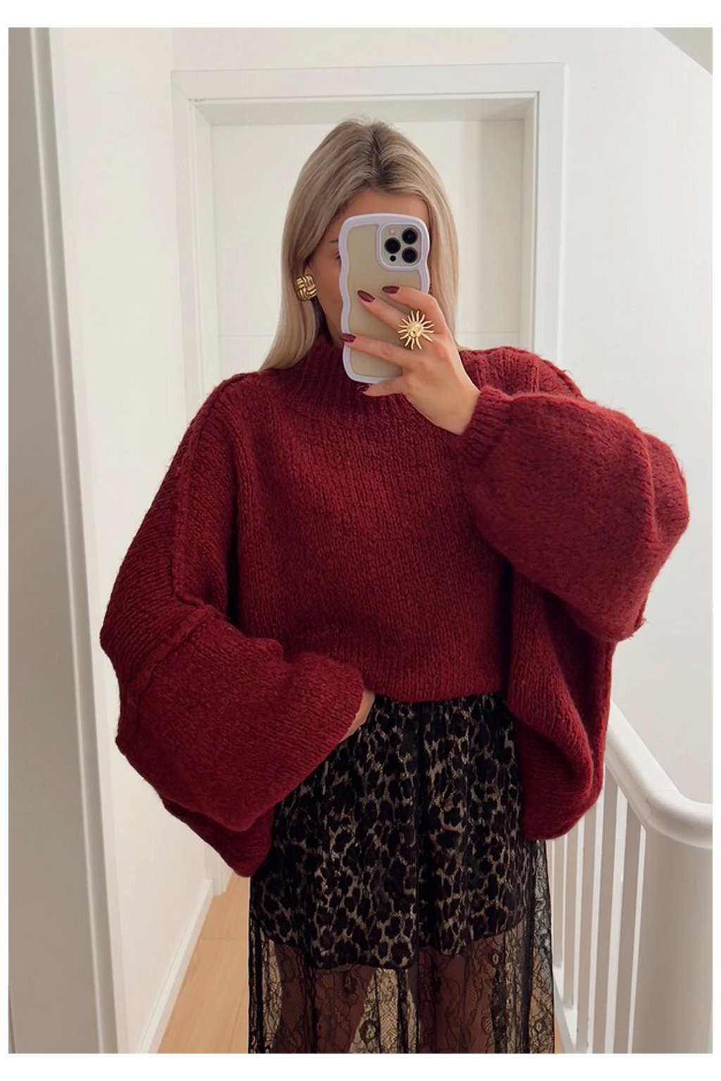Dámský oversize svetr Walli burgundy Dámský oversize svetr Walli burgundy